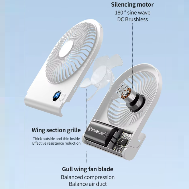 Feature: Liquid crystal digital display, Hangable, Minimalist design, 5-speed air volume adjustment.