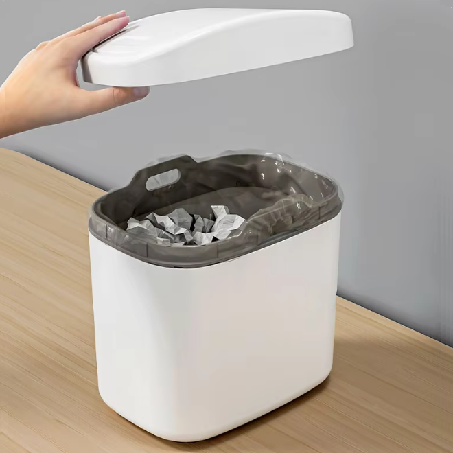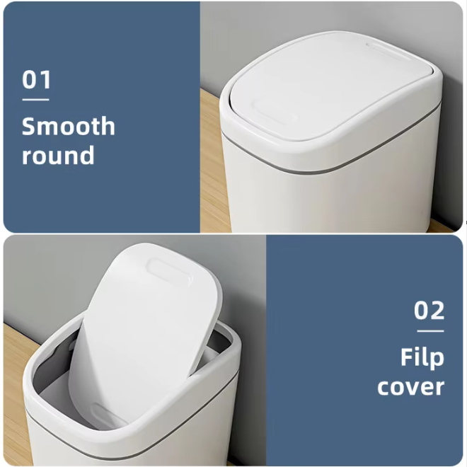 Feature: Smooth round, Large opening design makes iteasy to throw garbage into the can, Trash cans coverto prevent odor emission, Bottom heighten.
